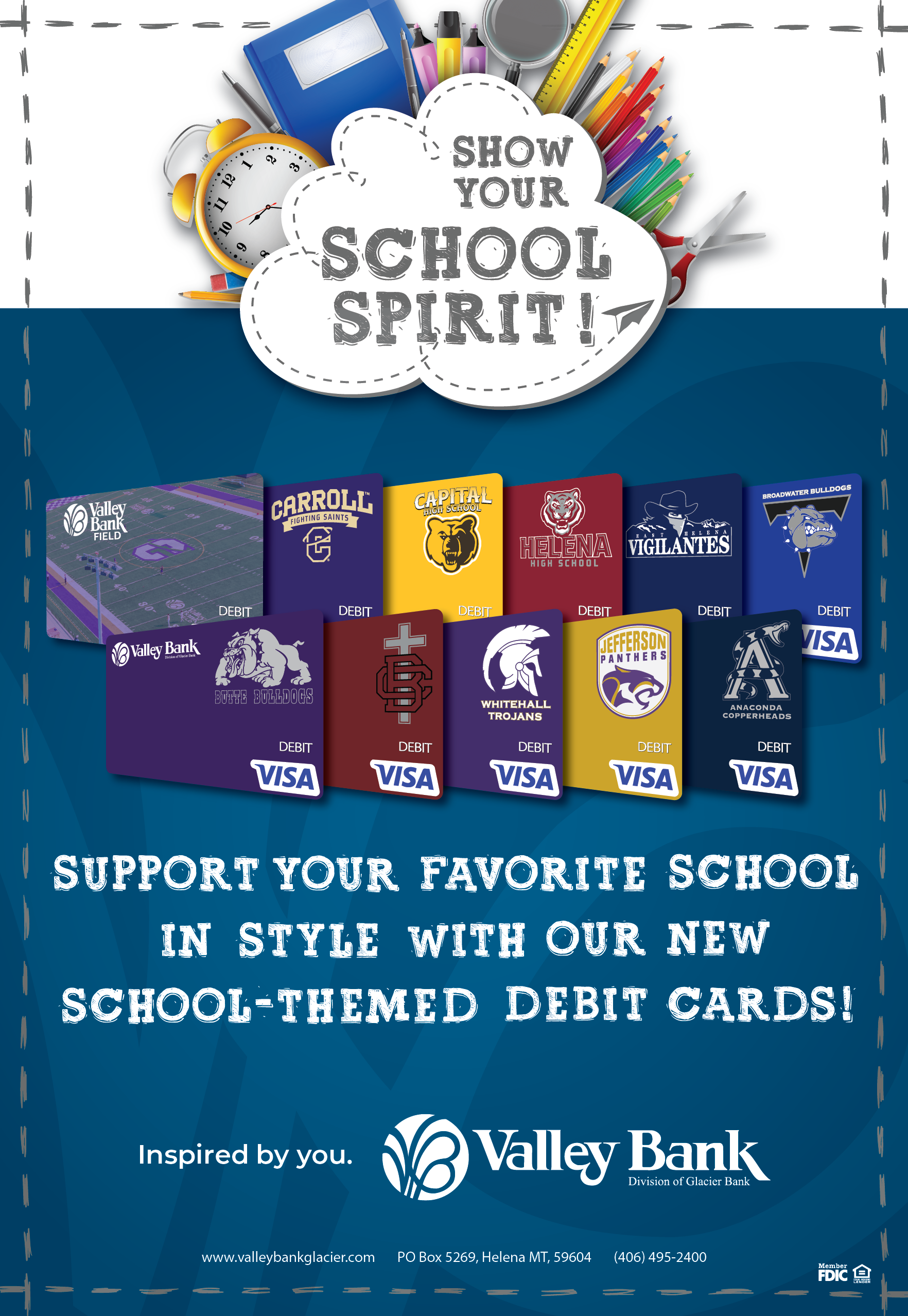 Show your school spirit with our school-themed debit cards.